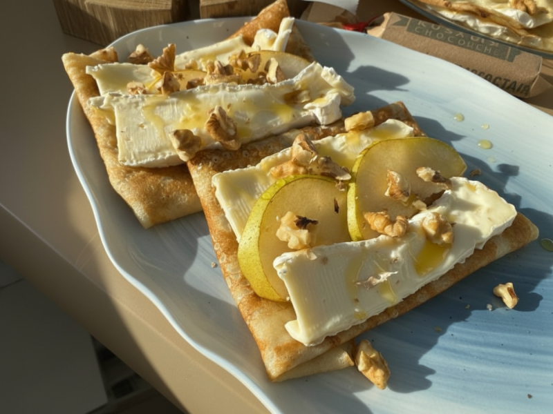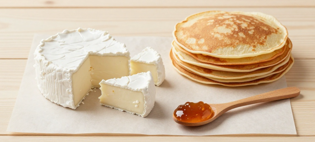 Представьте: вы снимаете со сковороды пышущий жаром, кружевной блин и кладете на него ломтик спелого Бри или Камамбера. От тепла корочка чуть поддается, а сливочная сердцевина начинает медленно подтаивать, превращаясь в нежнейший соус. Это уже не просто завтрак, это какое-то северное хюгге, где каждый укус — как объятие.
